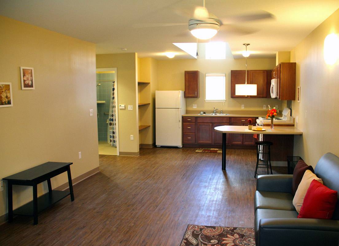 Financed under HUD’s Section 811 housing program, Crawford Commons is an affordable supportive housing development in Cuba, Missouri. Built according to Green Building standard and 100% Universal Design, the project consists of two single-story buildings and includes 14 apartments, a community room and laundry room. Construction was slab-on-grade with wood frame, Hardie siding, asphalt shingle roof, and vinyl plank flooring. The project also included a parking lot and additional site work.