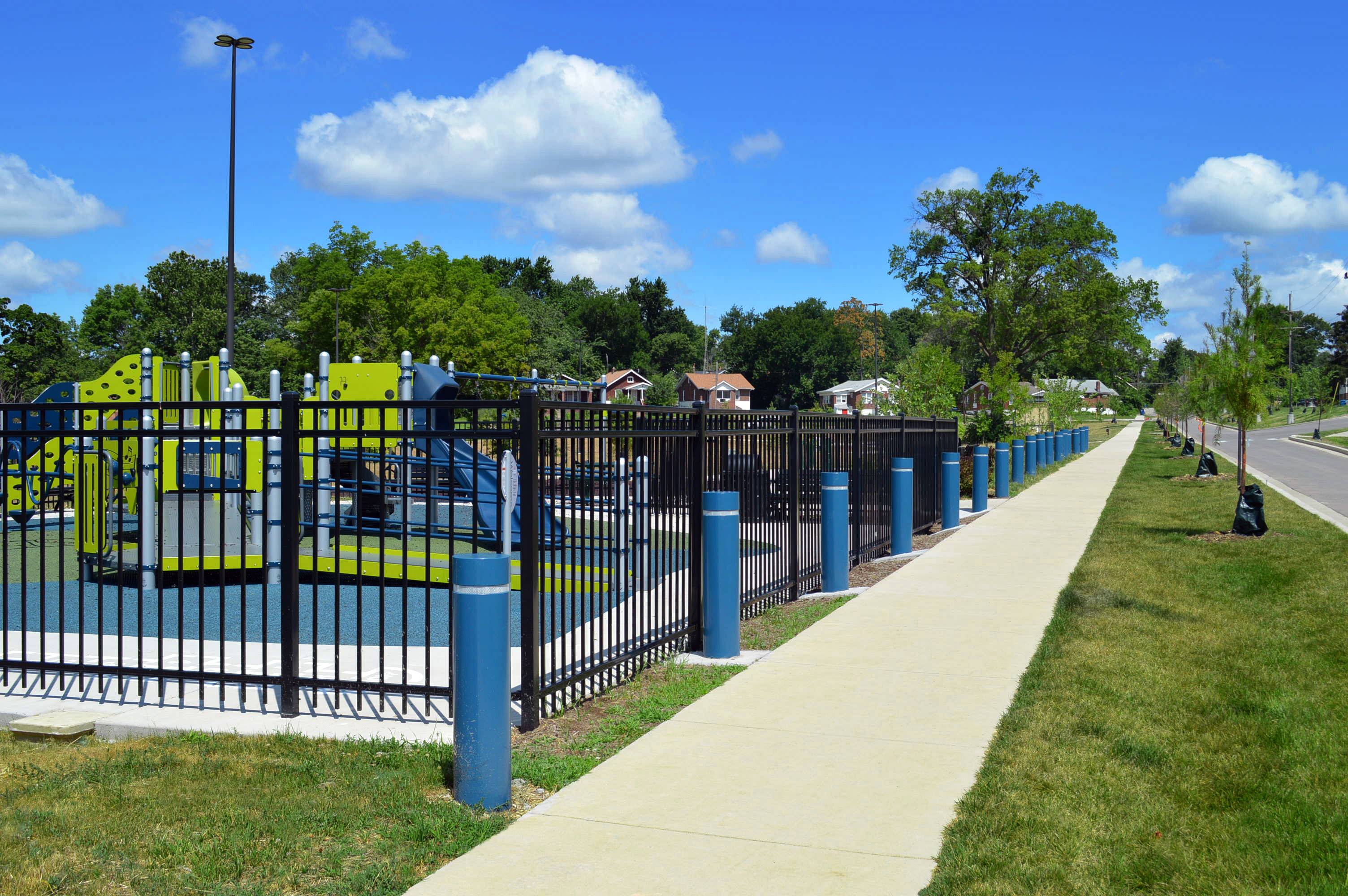 Child safety, urban renewal, and stormwater reduction goals converge in award-winning park and streets project.