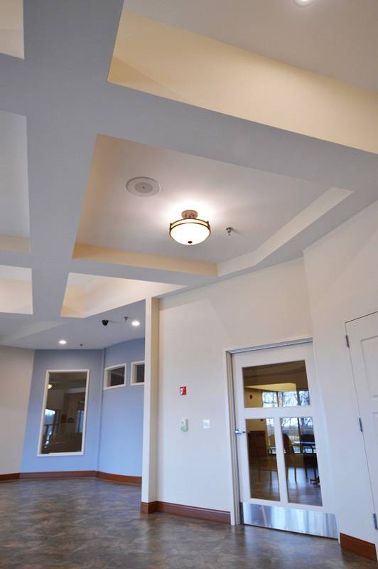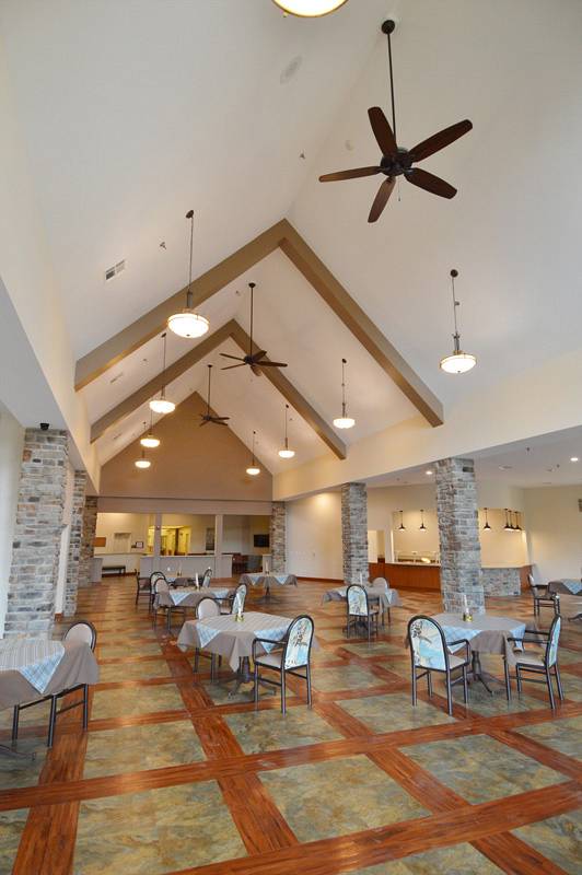 The new 110-bed Silverstone Place Skilled Nursing sits atop a hill on 22 acres in Rolla, Missouri. This new facility contains 46 private units (including four bariatric spaces) and 32 semi-private units (including two bariatric spaces). The building is constructed of concrete slab-on-grade with wood frame, and the two-story wing is constructed of structural steel with a concrete slab on deck. The exterior is covered with cement board siding, cultured stone and an asphalt shingle roof, and the building is heated and cooled with PTAC units for the occupant bedrooms and rooftop units and conventional ductwork for the community spaces. Resident bedrooms have large operable windows and full bathrooms with roll in showers. A large physical therapy gym with an exterior sun deck provides space for rehabilitation services, and the facility also includes two interior courtyards, with one specially designed for rehab patient therapy. Additionally, the facility includes an activity center, full institutional kitchen, and two large dining rooms, one with a 26’ cathedral ceiling and a patio. The basement houses maintenance and support facilities.